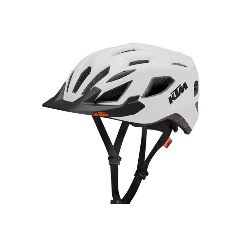 Capacete da linha desportiva KTM Factory Line com sistema de ventilação integral com 21 aberturas e carcaça fabricada com polímeros ultraleves. Alças reguláveis em nylon com fivela de encaixe. Espumas interiores c/ tratamento antiodores e antialérgico